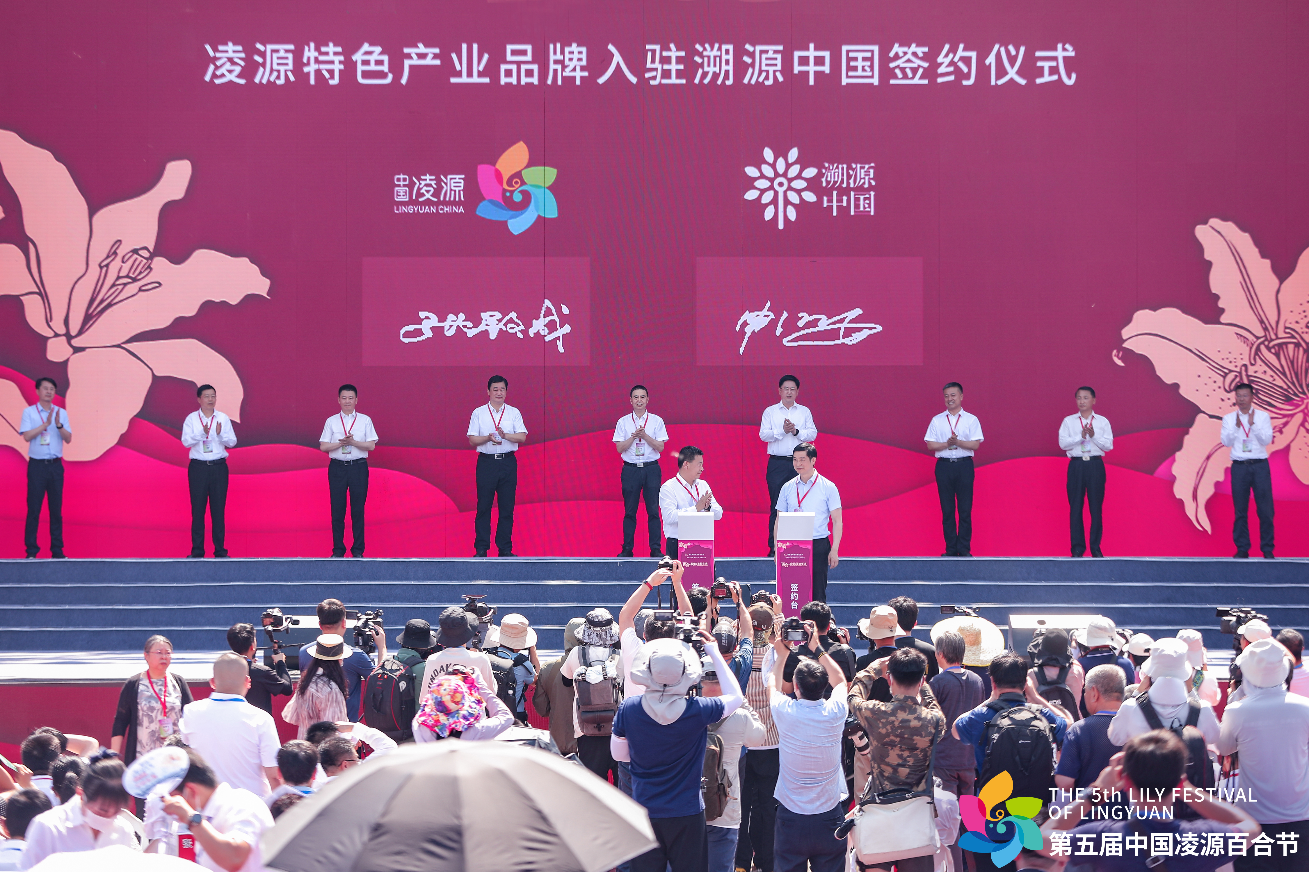 6月18日,第五届中国凌源百合节于辽宁凌源中国百合博览园开幕。本届百合节以“百合绽放美好生活”为主题,汇聚产业发展磅礴力量,以数字化赋能乡村振兴。图为凌源特色产业品牌入驻溯源中国签约仪式暨新华网溯源中国“种子计划”凌源站启动仪式。pagebreak