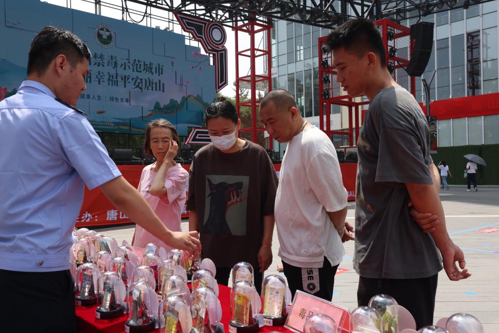 6月26日,民警在河北省唐山市为市民普及常见的毒品及危害。