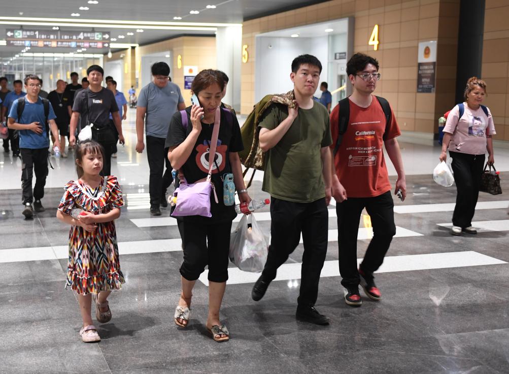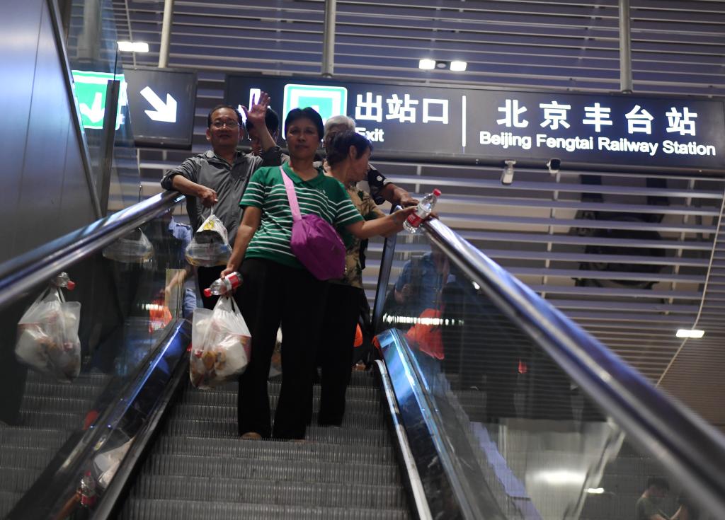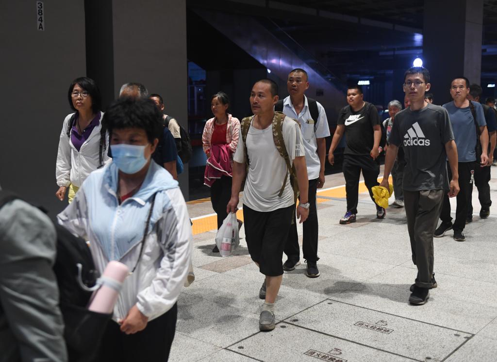 8月3日,K396次、Z180次列车的滞留旅客到达北京丰台站。