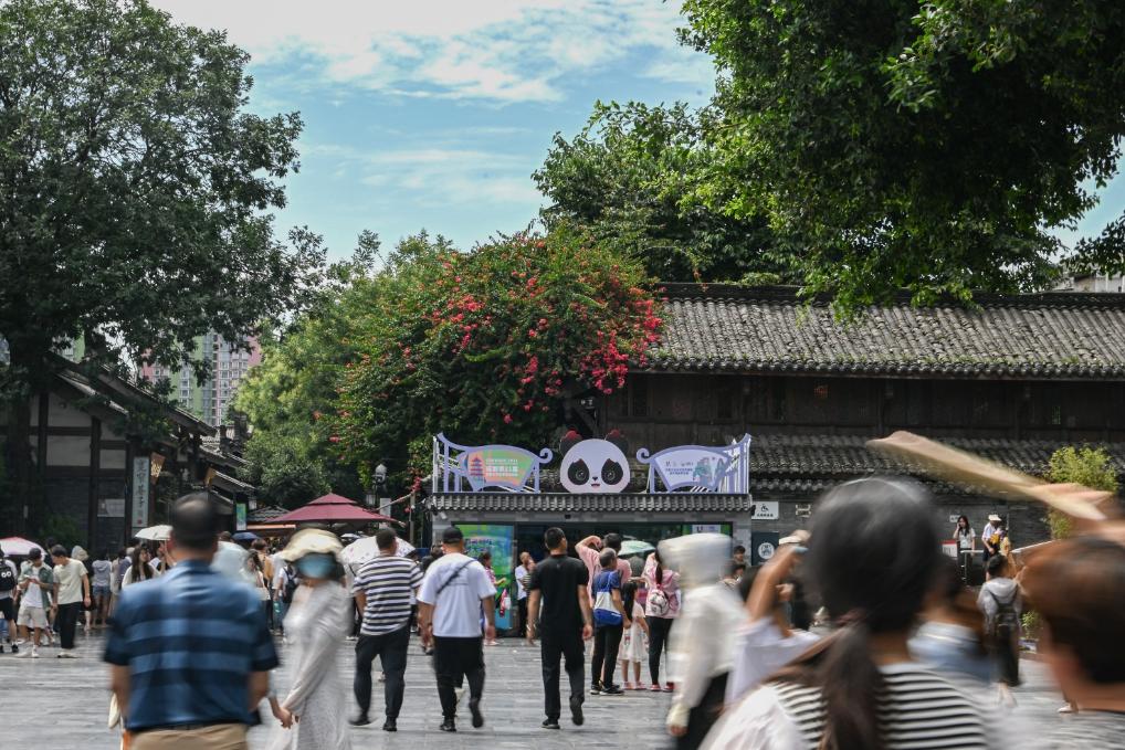 7月14日,成都市宽窄巷子景区的一家成都大运会特许商品零售店。新华社记者王曦摄