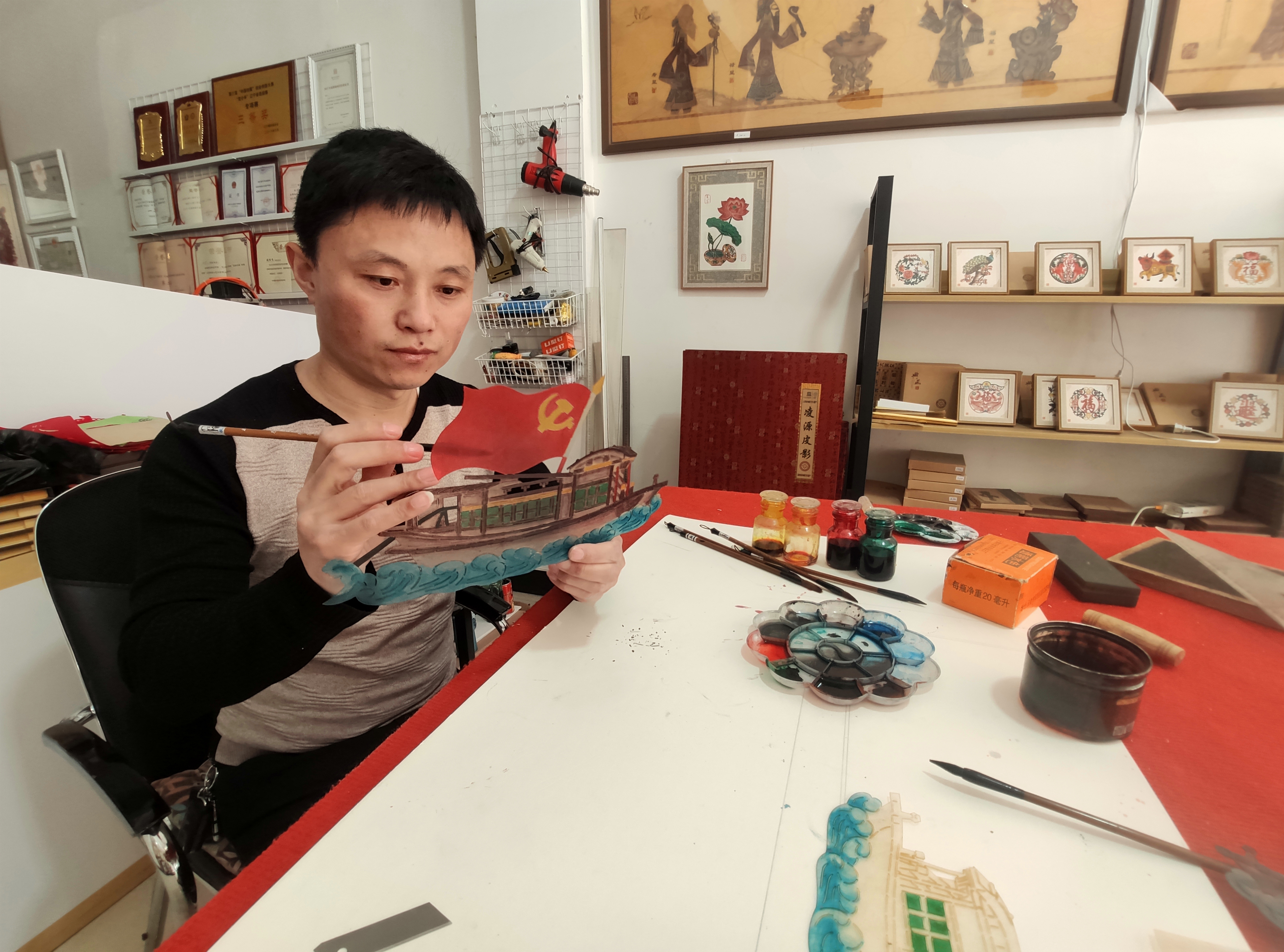 张佐飞2019年响应国家“大众创业,万众创新”的号召成立凌源影韵文化产业有限公司,依托凌源皮影优秀资源,开发皮影工艺品、皮影体验产品及文创产品,通过多元化的非遗产品开发,弘扬民族传统文化,为乡村振兴助力。