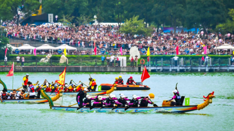 开幕式上,文艺表演、彩船游行以及“中国体育非物质文化遗产保护推广项目”——女子凤舟赛相继上演。两岸河堤上满心欢喜的人们摩肩接踵、挥汗成雨。