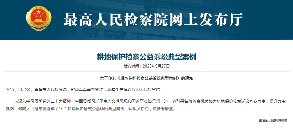 记者日前从最高人民检察院获悉,最高检近日印发了一批耕地保护检察公益诉讼典型案例,进一步引导各级检察机关加大耕地保护公益诉讼办案力度,提升办案质效,强化耕地司法保护。
