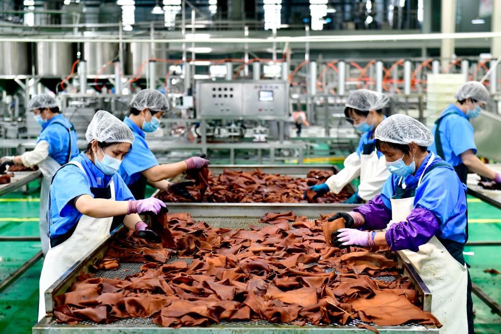 10月11日,山东省惠民县东方豆制品有限公司的工作人员在加工豆制品。