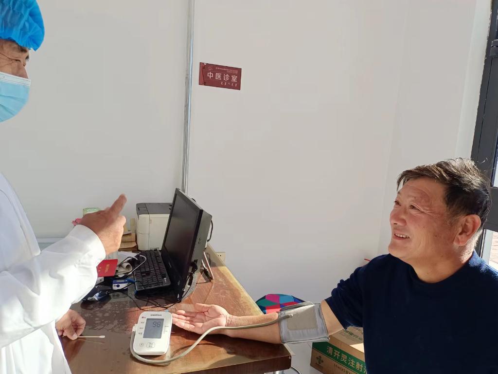 图为村民马建华在村卫生室测血压。新华社记者 张丽娜 摄