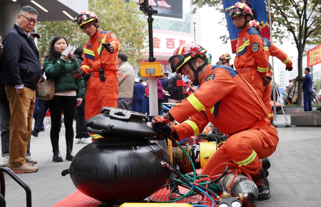 当日,上海市长宁区消防救援支队主办的2023年“119”消防宣传月启动展示活动在辖区内虹桥艺术中心举行。本次展示活动主题为“预防为主,生命至上”,在设备展示、展板宣传和实操体验等11个展区内,集中了多用途无人机、超高压千斤顶、气动起重垫等装备,让市民在活动中零距离接触消防“黑科技”,增强消防安全意识。