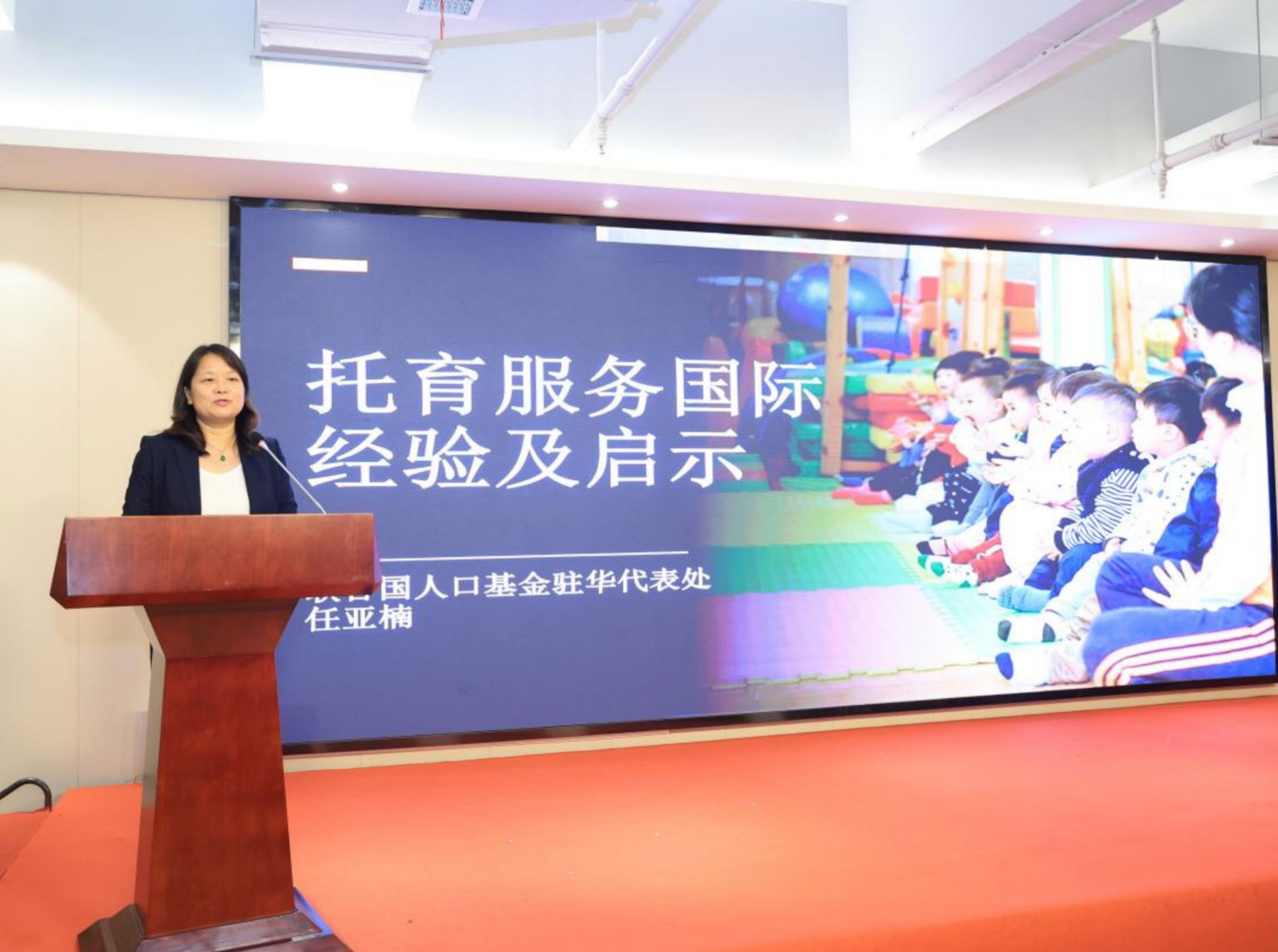 论坛分为主旨演讲、专题发言和圆桌论坛等多个环节。在主旨演讲环节,联合国人口基金驻华代表处项目官员任亚楠建议,应对低生育率趋势,需要政府建立诚信和规则,公益组织、雇主和家庭应多方参与,通过将家庭化和去家庭化的政策相结合,提供可负担的、可及的、优质可靠的、包容性的托育服务。