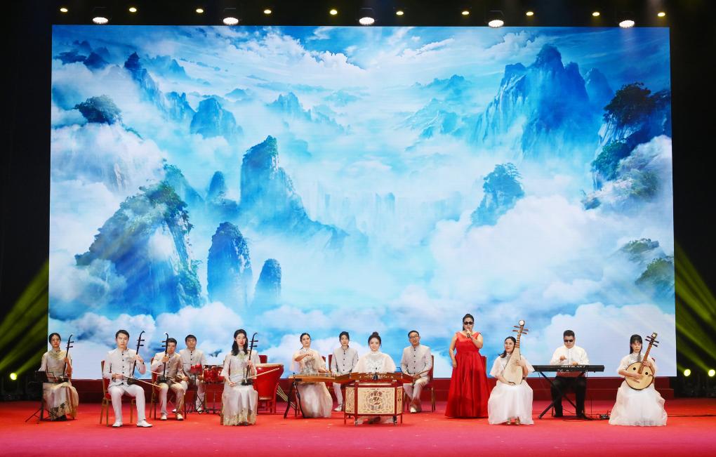 12月3日,山水民乐团的演奏者们在表演器乐合奏《云宫讯音》。