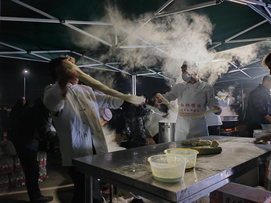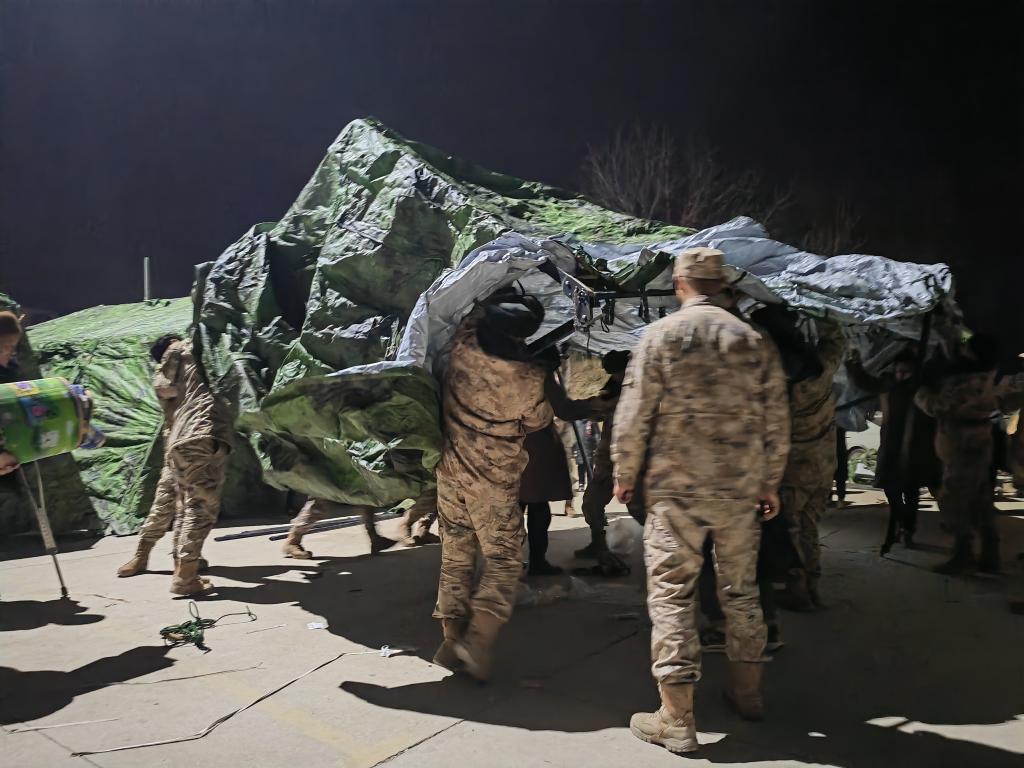 今晚是灾后安置第一夜,凛冽的严寒中,各项救援保供工作有序推进,忙碌中透着些许温暖。