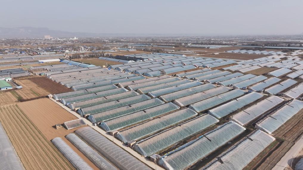 陕西省泾阳县居智村的大棚内蔬菜生产稳定有序(无人机照片)。新华社记者张晨俊 摄