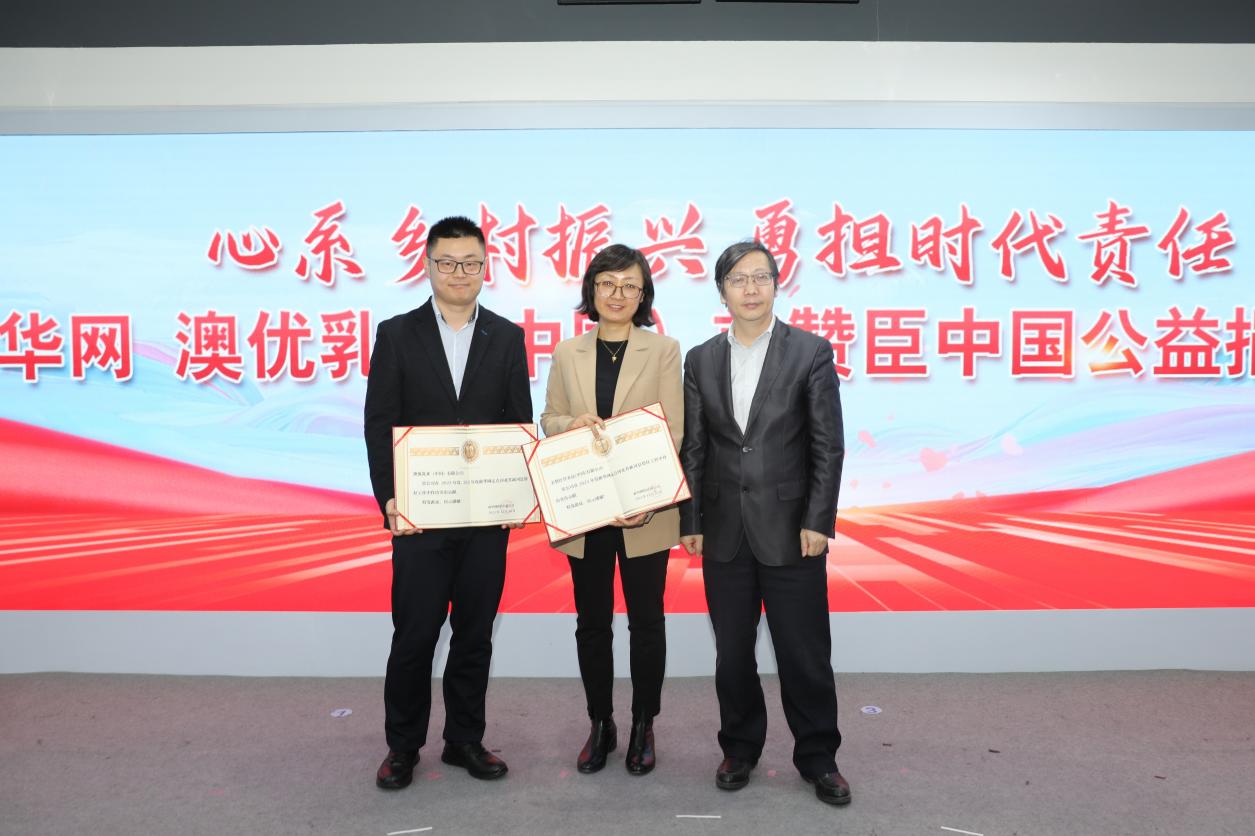 新华网副总裁杨庆兵向澳优乳业、美赞臣中国颁发荣誉证书