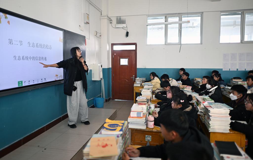 12月25日,民和县官亭土族中学教师在民和县第一中学的教室内授课。新华社记者 张宏祥 摄