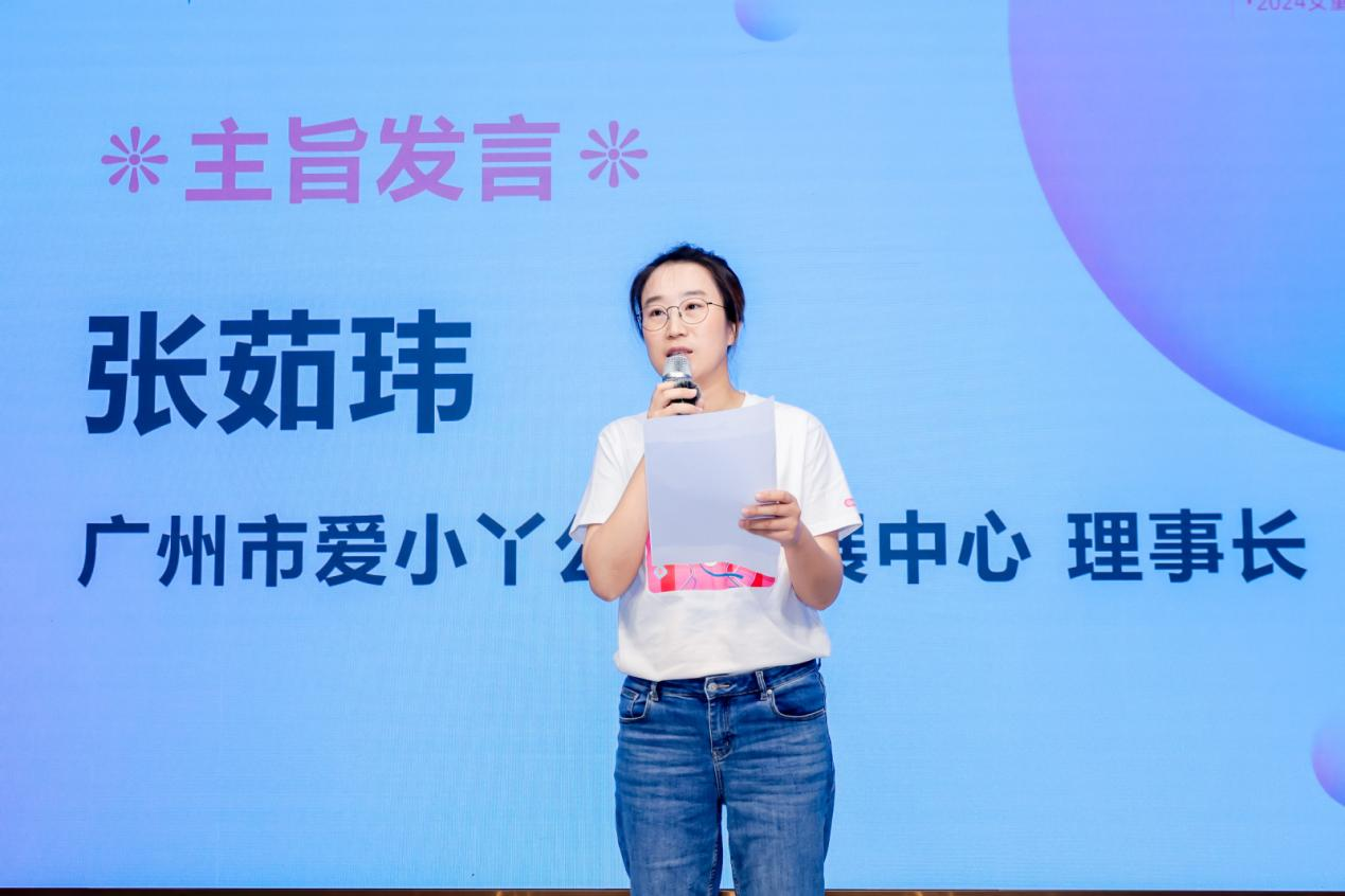 广州市爱小丫公益发展中心理事长张茹玮进行了主旨发言,她介绍了爱小丫成立于2013年,围绕着女孩成长中面临的多元问题不断完善项目体系,致力于探索出一条有效赋能女童和青年女性健康、保护、教育和发展的公益道路。同时,她也表达了爱小丫希望在科技创新的大背景下,能够与更多组织、更多人携手共创女性美好未来。