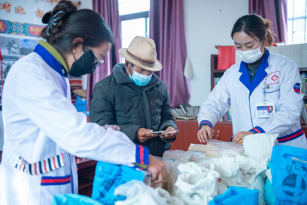 村民德吉也陪着奶奶前来就诊。“我奶奶今年81岁了,有高血压,去医院不方便。这次义诊活动看病、拿药都是免费的,对我们很有帮助。”德吉说。