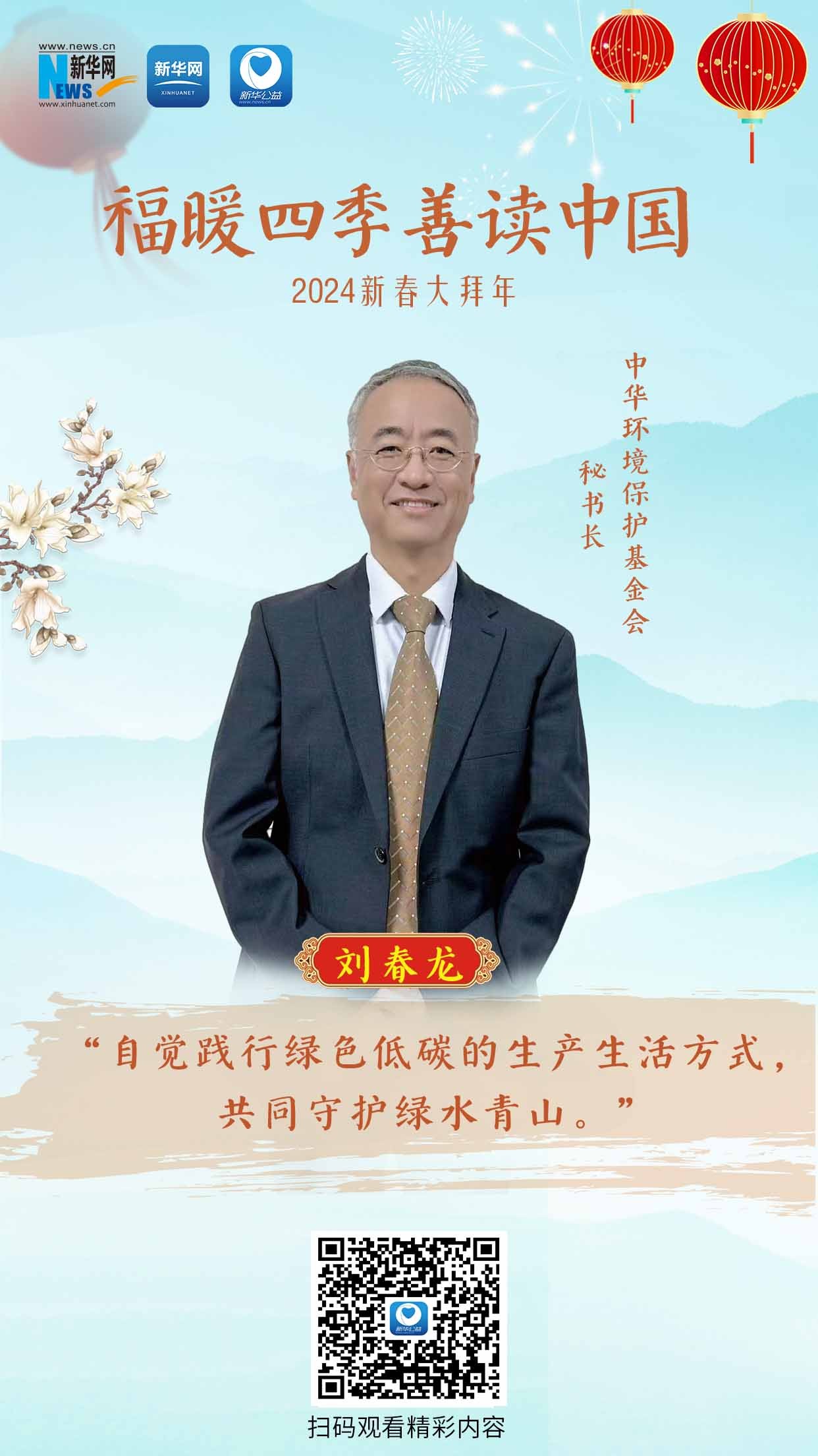 玉兔辞旧,龙腾盛世。新春佳节到来之际,中华环境保护基金会秘书长刘春龙祝大家龙年吉祥,好运连连,顺遂安康,事业有成,生活幸福!