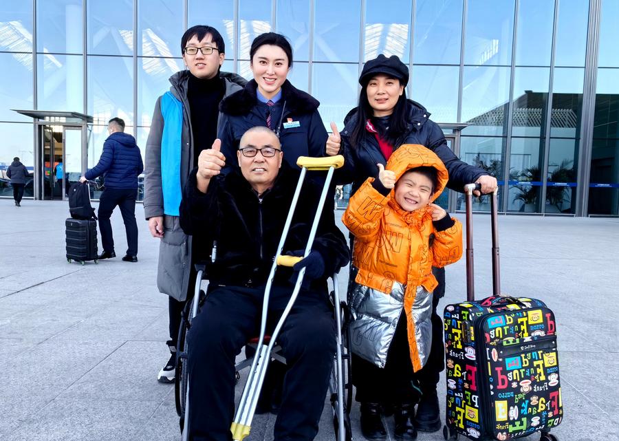 “大爷,天气凉,我给您把帽子戴好”“前面有减速带,会有些颠,您扶好扶手”“路上注意安全,有啥需要您再和我联系呀”……北京朝阳站京铁爱心服务组工作人员、33岁的陶志婷,手推轮椅,肩背行李,忙着把一位腿脚不便的老人送上列车。