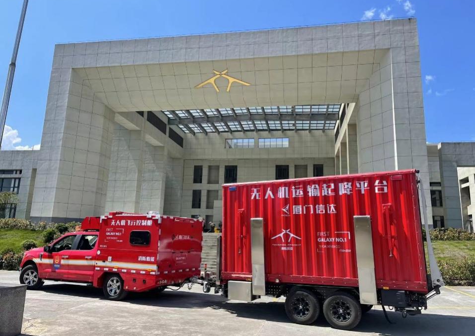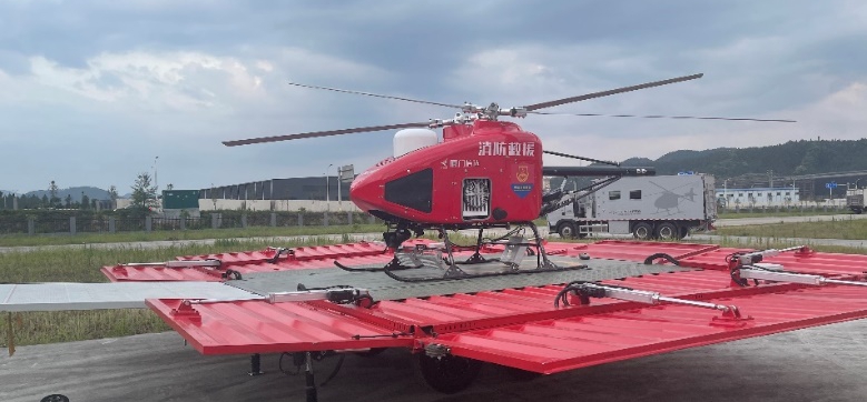 据悉,“星曜一号”大荷载长航时无人直升机应急救援装备依托北京清航紫荆装备科技有限公司、厦门信达国贸汽车集团股份有限公司、厦门信达星曜有限公司、三明市大田县清航装备基地联合开展研发、总装、联调与测试。由JZ-550大荷载长航时交叉双旋翼无人直升机、高性能四驱越野测控车、运输起降平台三部分组成。JZ-550交叉双旋翼无人直升机起飞重量>550kg、有效载重>230kg、抗风等级>8级、升限7500m、续航时间>5h。交叉双旋翼技术克服了直升机在不稳定气流环境下导致坠机的“死亡涡环”产生,在不稳定大区域气流中可创造稳定的小区域飞行流场环境,在火场上空、峡谷、楼群建筑物间均可稳定飞行,并具备高温、高寒、高原、湿热、盐雾、中雨、中雪等环境下稳定飞行能力。测控车采用高性能四驱越野底盘,可在崎岖复杂路面及地形环境、恶劣气候下稳定行驶。运输起降平台由测控车拖挂前行,具有5度坡面自动找平、一键展开闭合功能,能够为无人直升机提供可靠便捷起降平台,免去了直升机搬运,并摆脱了对起降场地的限制。“星曜一号”应急救援装备用于解决森林草原、大型石化、超高层建筑、船舶等火灾扑救及地震、山地、洪涝、冰雪等复杂恶劣环境下装备投送、人员救援等。