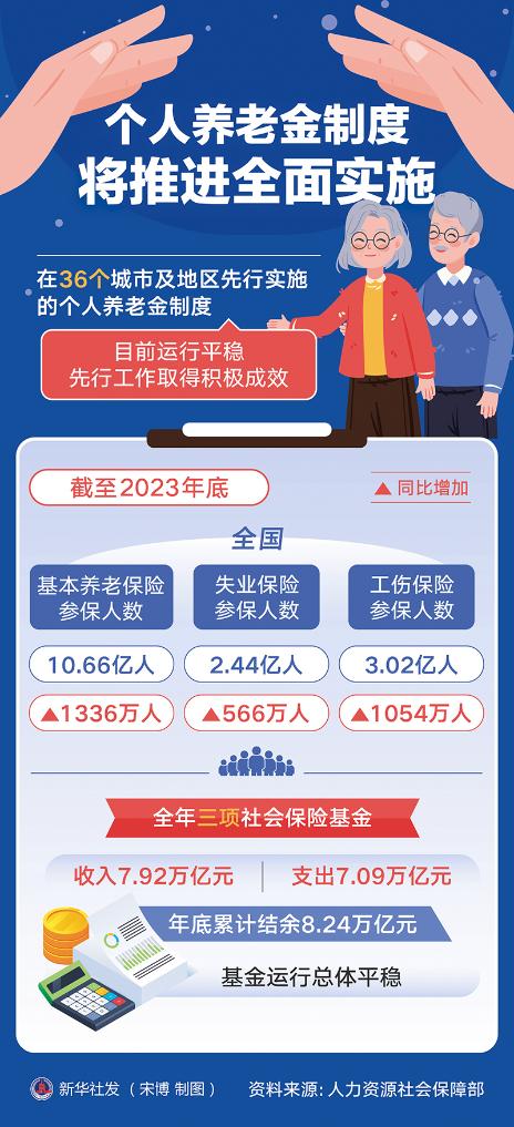 2024年1月24日,人力资源和社会保障部相关负责人在新闻发布会上介绍,个人养老金制度目前运行平稳,先行工作取得积极成效,下一步将推进制度全面实施。