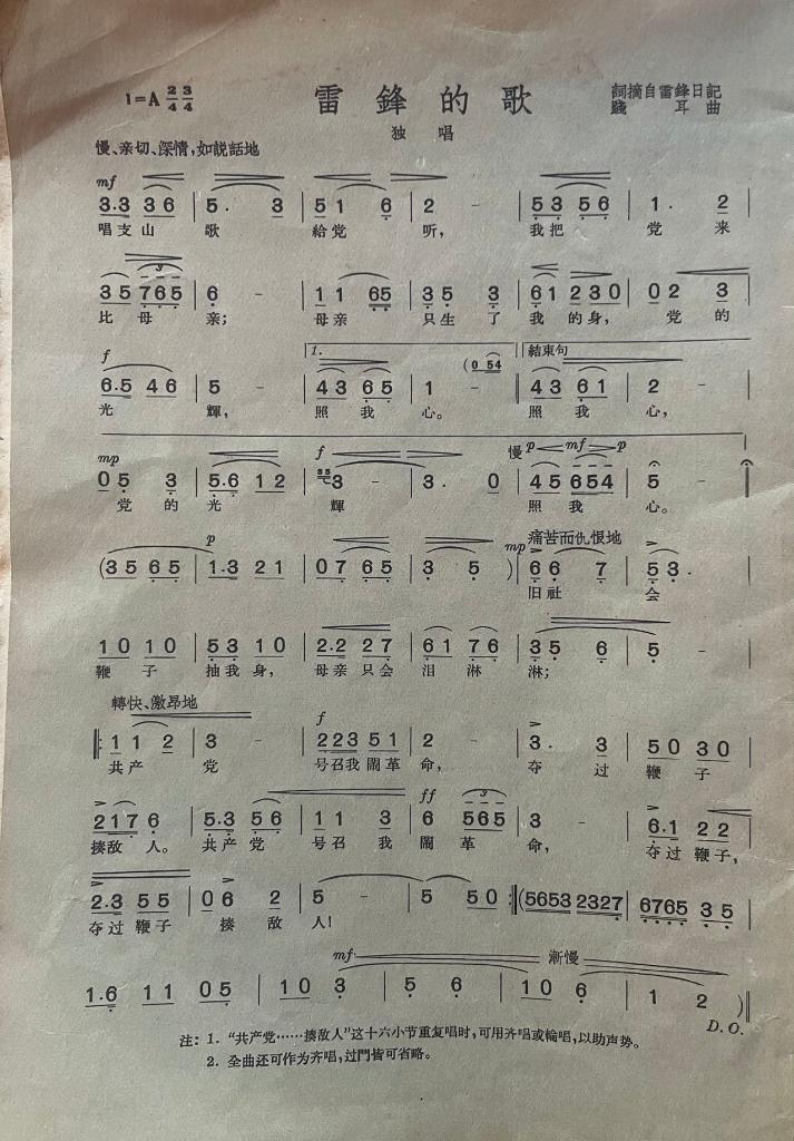 抚摸着泛黄的尾页,褚士奇讲起了这首歌的故事。1963年,媒体相继刊登雷锋日记,一时间,日记中那些朴实而动人的话语感动了无数人。彼时,作曲家朱践耳在报纸上读到这首小诗,深受触动,很快为其谱写了悠扬的旋律,并命名为《雷锋的歌》。