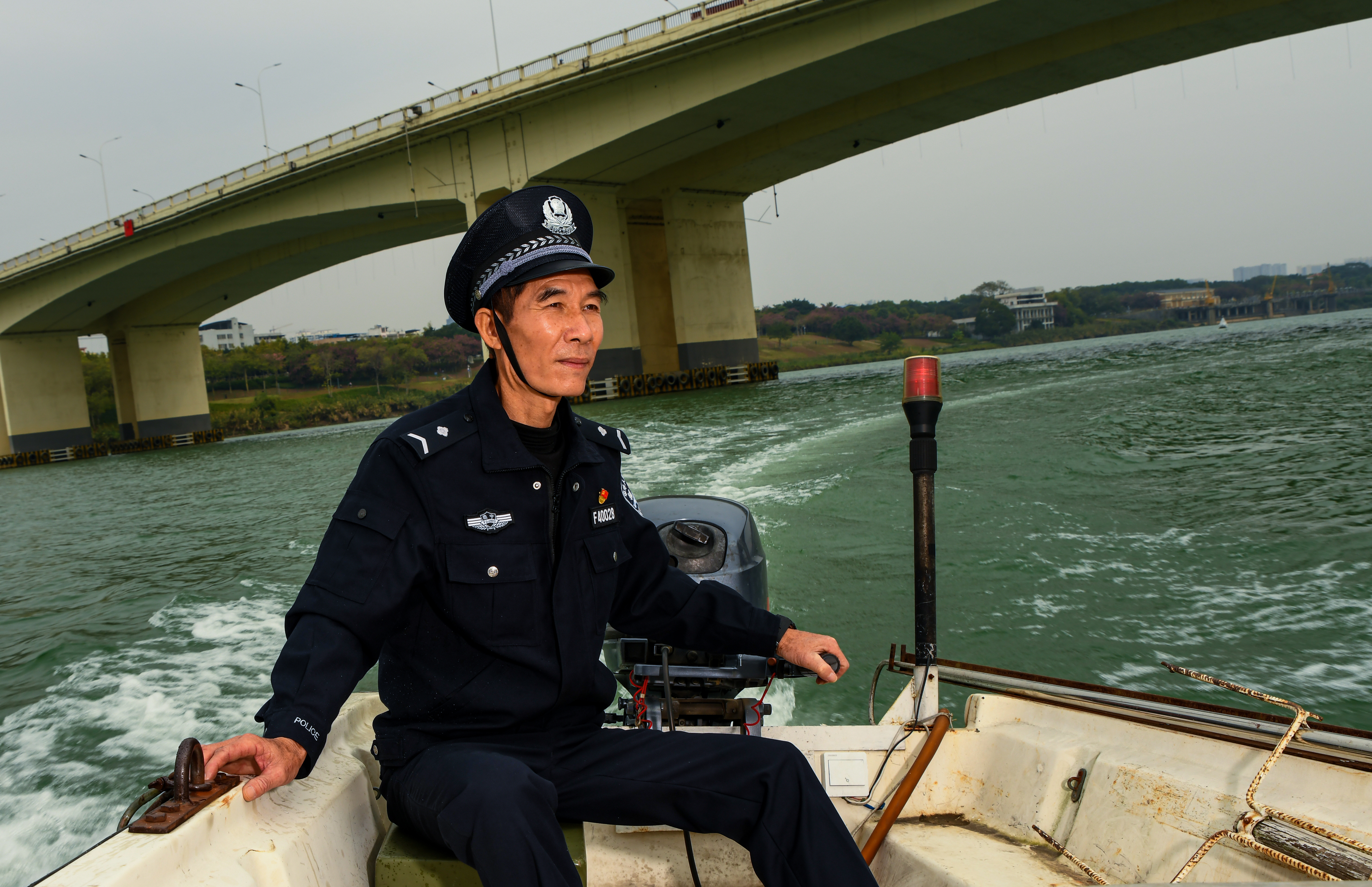 作为南宁市公安局江南分局唯一一名同时持有轮机长证和内河船舶驾驶证的老船长,黄庚有常年驻扎邕江船排上,负责辖区39公里水域的水上执法、治安防控、抗洪抢险、救援打捞、安保执勤、安防宣传等任务。