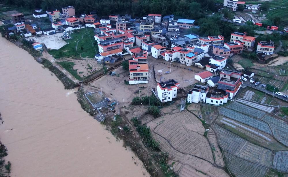 这是4月21日在广东清远英德市浛洸镇拍摄的被洪水淹没的区域(无人机照片)。