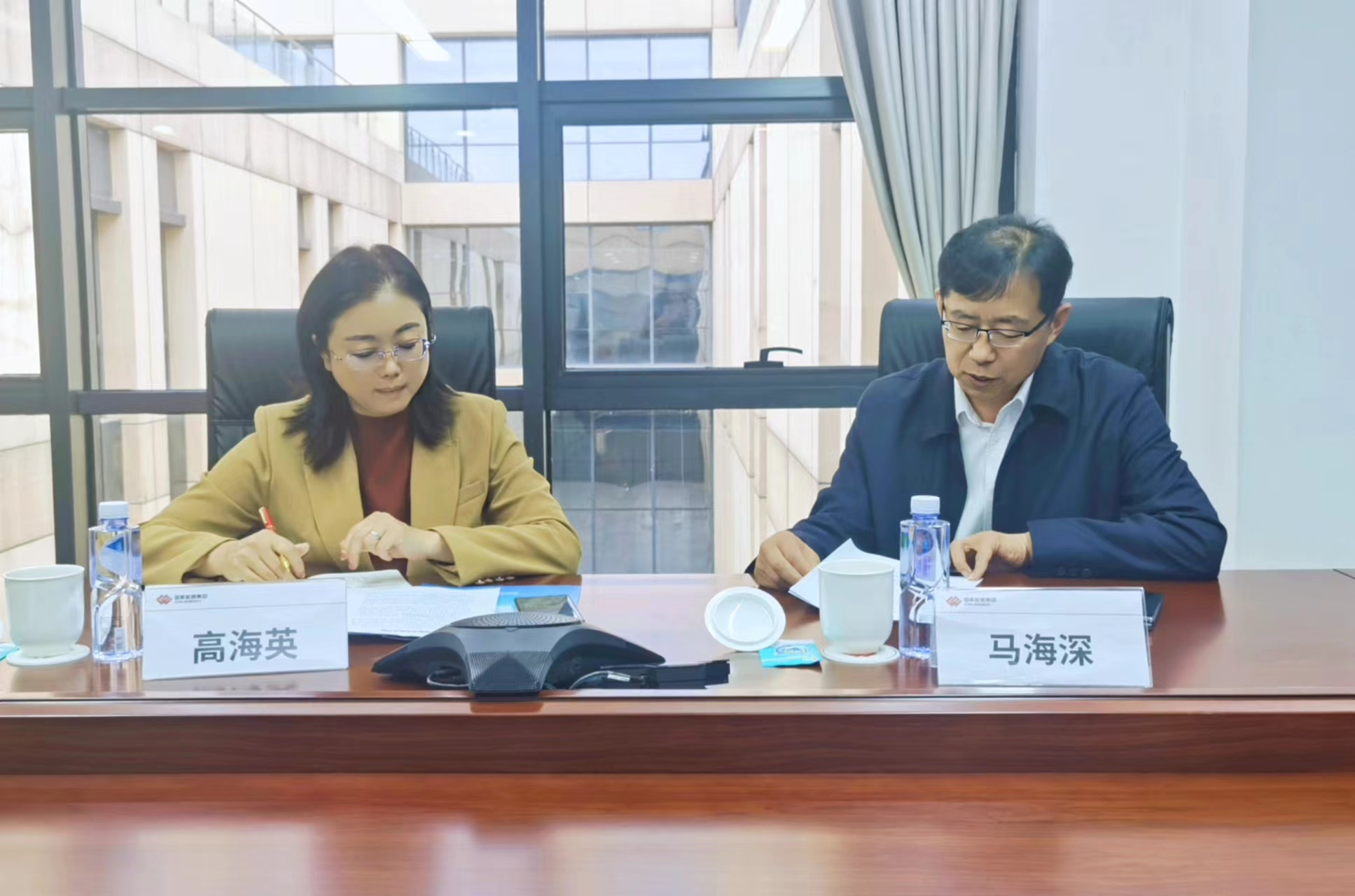 图为国能黄骅港党委委员、副总经理马海深(右)接受采访 中华环境保护基金会供图