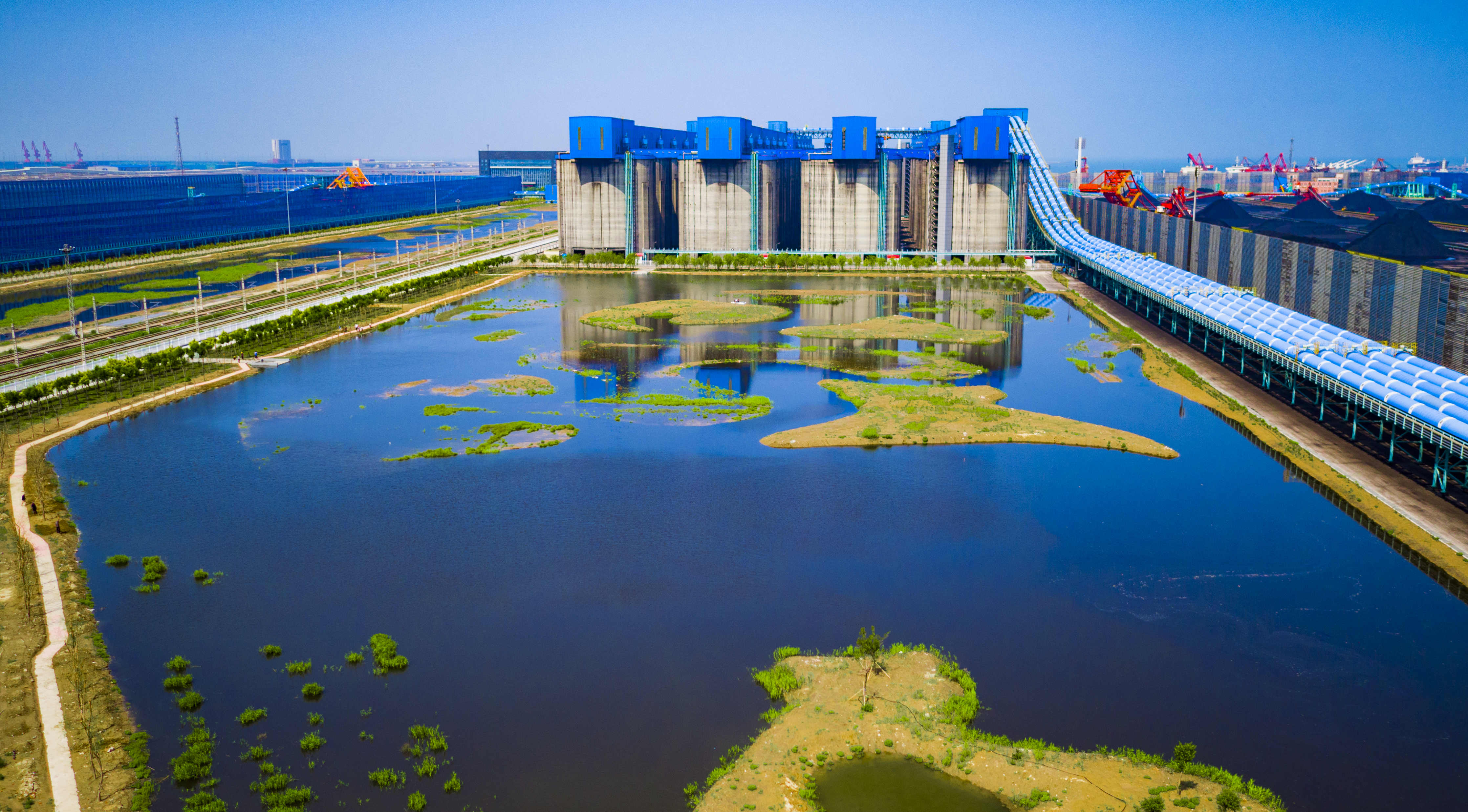 近日,中华环境保护基金会“港口海岸生态保护修复项目”的负责人和新华网记者一行专程走访了四个研究领域其中之一的试点港口——国能黄骅港。四月的北方春风袭人,走进国能黄骅港,煤炭港口却没有了飞扬的煤尘,煤炭装卸堆存全过程实现了无尘化。这座昔日的“煤港”,如今湖水清澈,鱼儿跃动,俨然一片“海上绿洲”,一幅幅生动的画面展现着港口海岸生态保护项目的显著成效。作为我国西煤东运、北煤南运的重要港口,国能黄骅港曾面临着严重的煤尘污染问题,如今,这里以科技创新为引领,探索出一条绿色智慧引领港口新篇章的发展之路。国能黄骅港顺利完成了从苦海沿边到绿色枢纽、生态良港的华丽蜕变,焕发出勃勃生机。