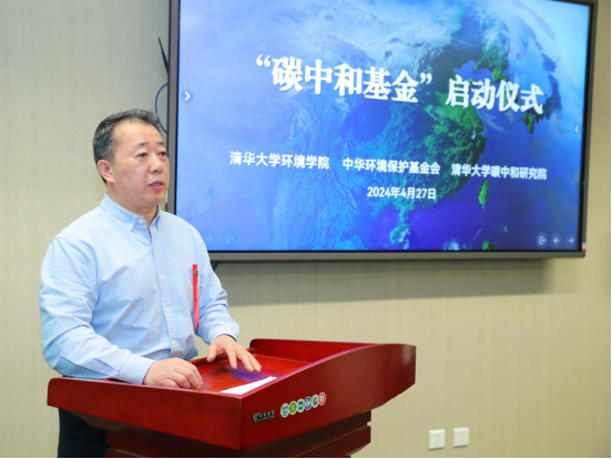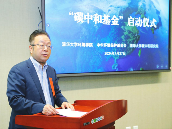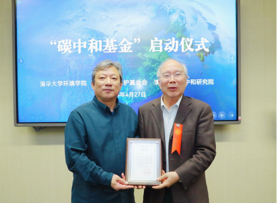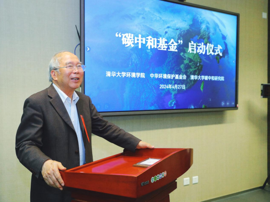 4月27日,清华大学环境学院40周年院庆之际,由中华环境保护基金会携手中国工程院院士、清华大学环境学院教授郝吉明共同发起成立的“碳中和基金”启动仪式在清华大学环境学院举行。