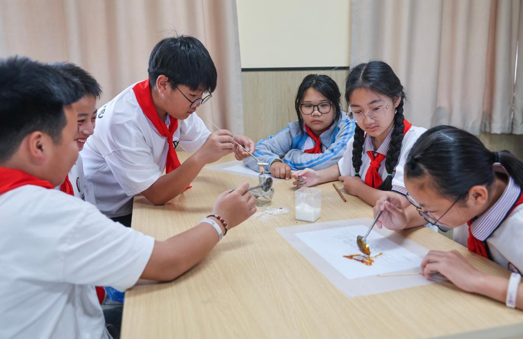 5月22日,太湖小学的学生们在特色课程上学习“糖画”制作。
