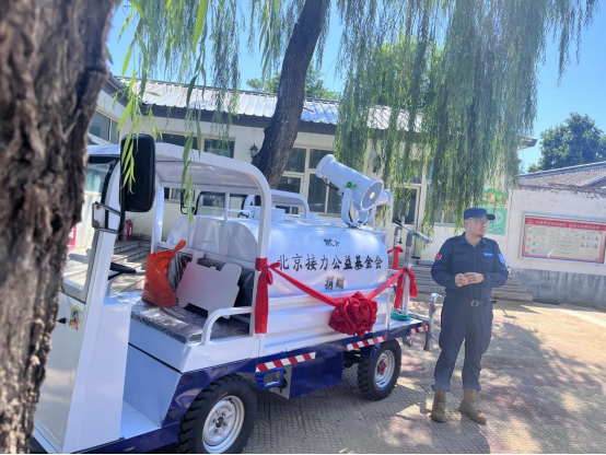 7月18日,北京接力公益基金会在北京市密云区河南寨镇山口庄村,举办向山口庄村、中庄村捐赠小型消防应急洒水车交车仪式。