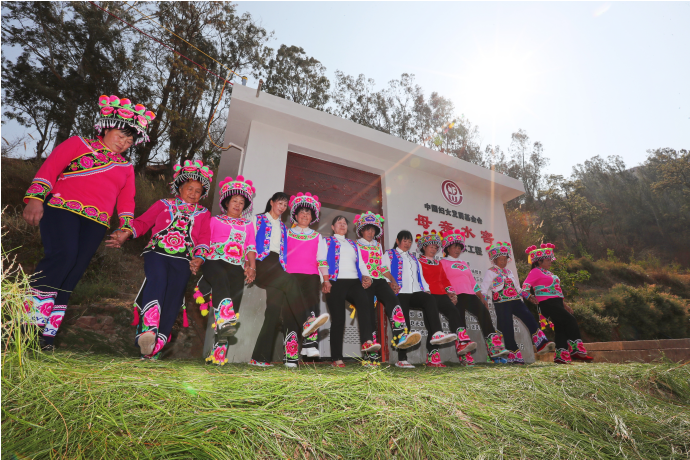 在“世界水日”到来之际,禄丰市黑井镇三合村的彝族妇女们身着盛装、笑靥如花,在刚投入使用的“母亲水窖”旁跳起彝族左脚舞。身后白墙上,“中国妇女发展基金会母亲水窖”几行大字十分醒目。