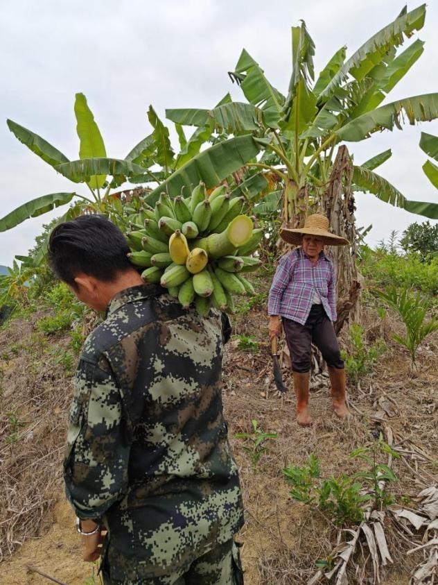 “‘消碳庄园’的芭蕉已经熟了,我给你们摘点尝尝。”黄定和热情爽朗地向我们展示着,手起刀落,“咔嚓”一声脆响,翠绿宽大的蕉叶中,一把沉甸甸的金黄芭蕉落地。