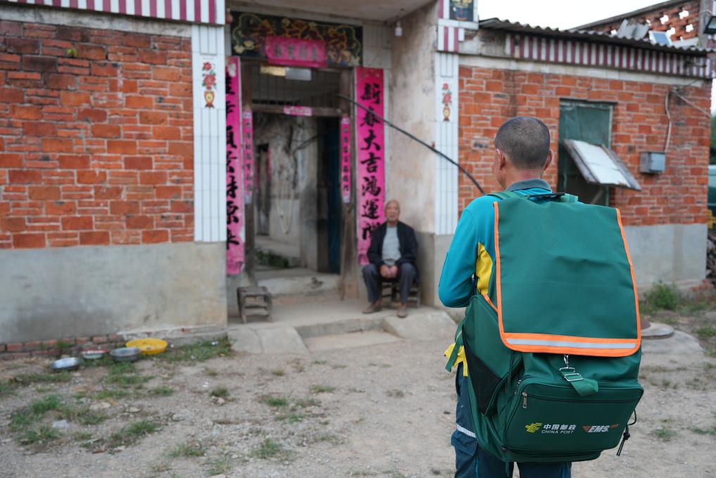 新华社郑州9月28日电(记者刘金辉)从河南省信阳市光山县晏河乡邮政所出发,绿色邮车开过崎岖的山路,中国邮政揽投员杨军背起邮包再步行走过一段土路,将一罐奶粉和几盒药品送到了80岁的胡楼村村民甘崇全家里,这是他在北京务工的大儿子给他寄来的。
