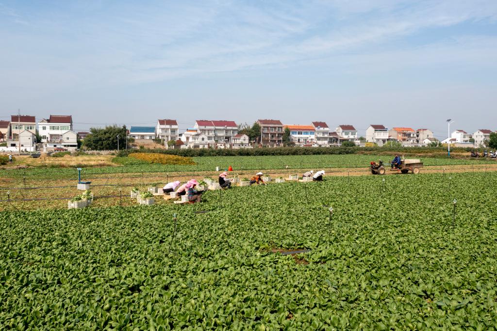 赛口镇九华村蔬菜种植基地,村民正在采收上海青。望江县委宣传部供图