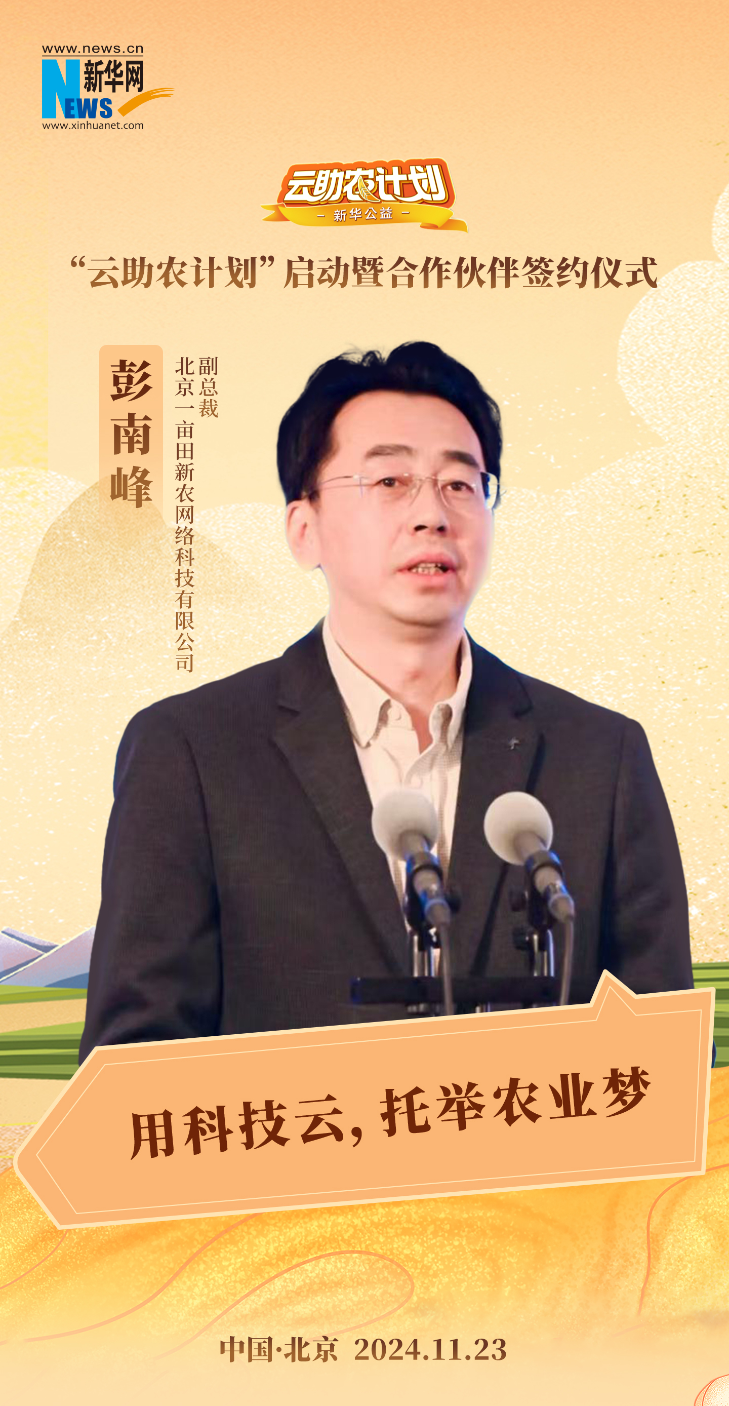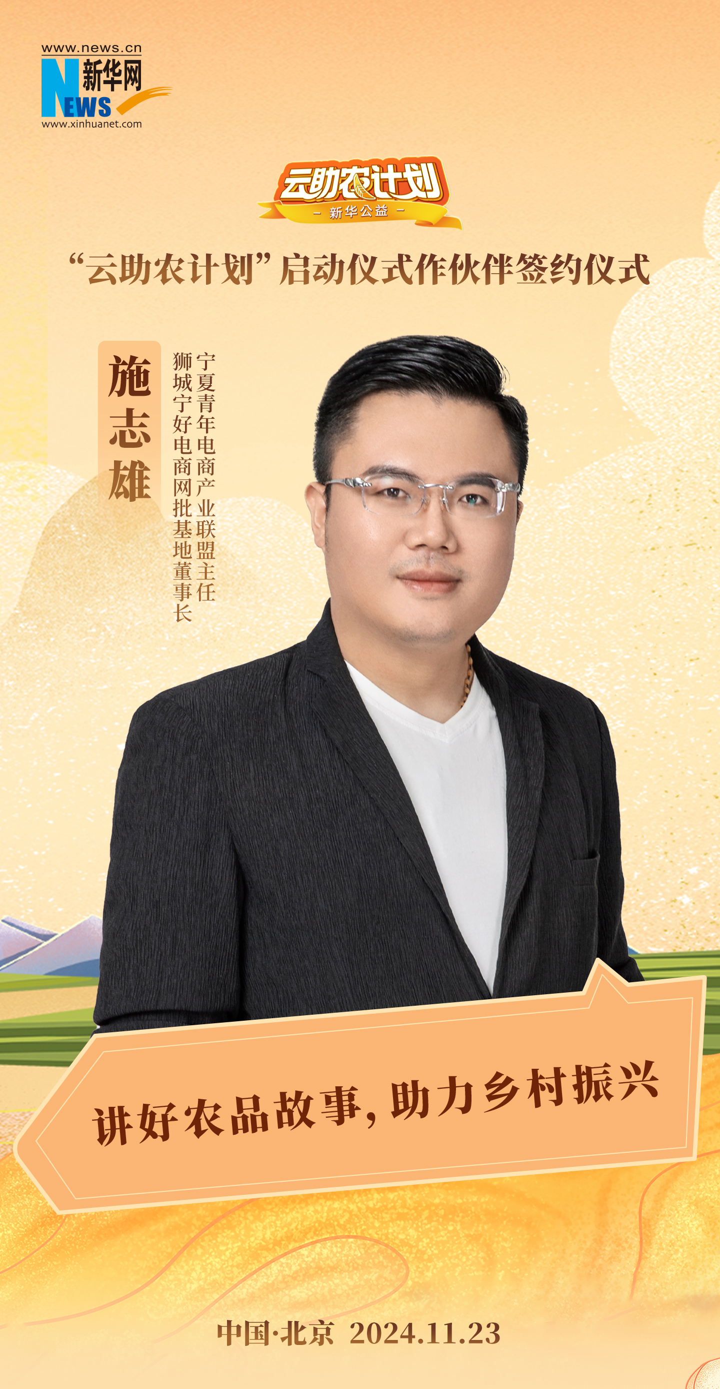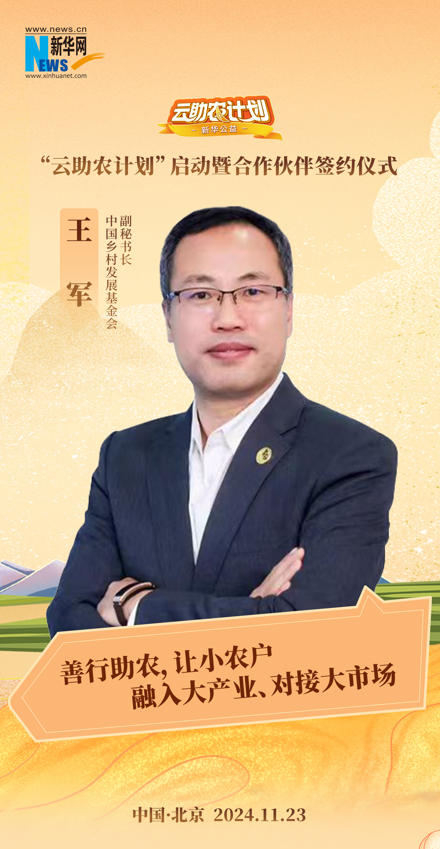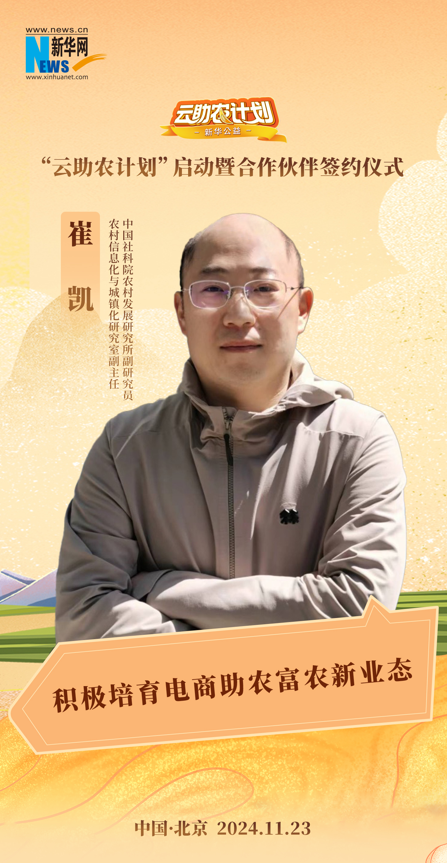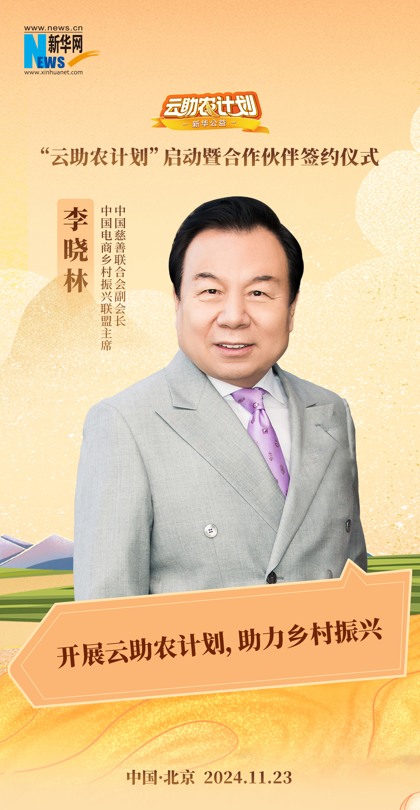 11月23日,由新华网主办,新华网客户端、新华公益、吉科软承办,中国乡村发展基金会、中国电商乡村振兴联盟支持的新华公益“云助农计划”在北京启动。