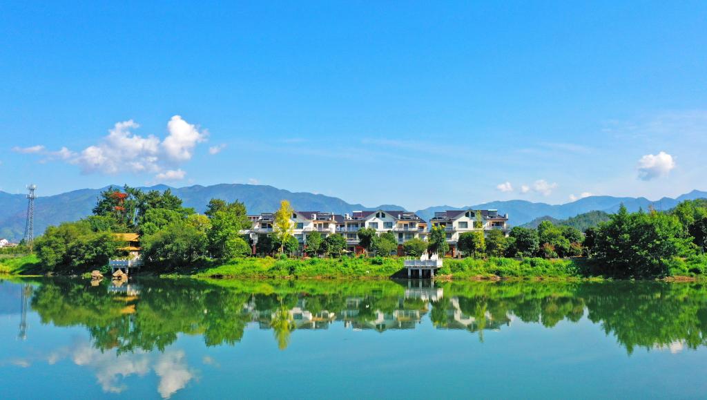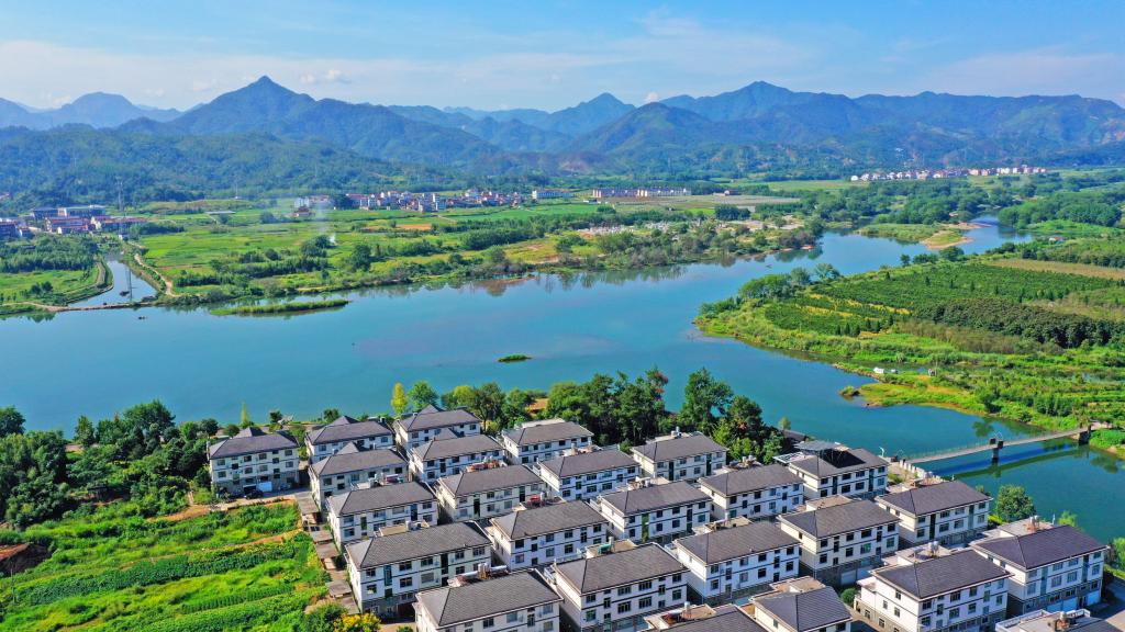 ↑2021年9月2日拍摄的浙江省台州市仙居县埠头镇大陈坑村水堆头自然村新貌。(无人机照片)CICPHOTO/王华斌 摄