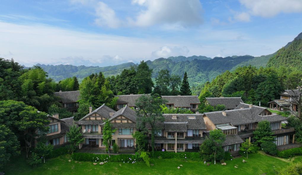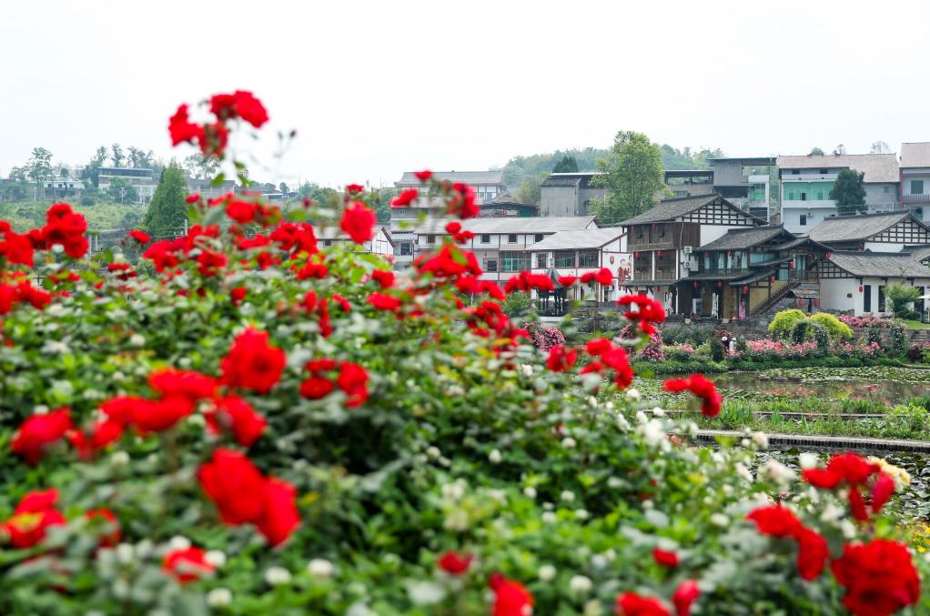 ↑2023年4月27日拍摄的四川省华蓥市禄市镇凉水井村生态观光园的特色民宿舒家大院。CICPHOTO/邱海鹰 摄