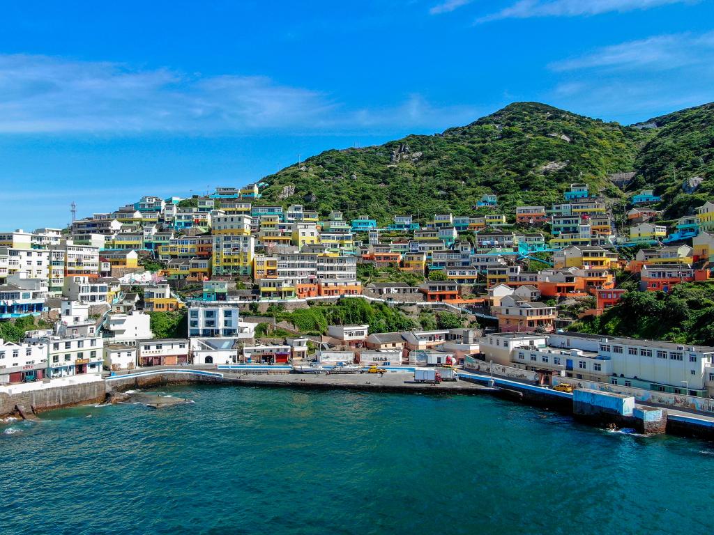 ↑2024年5月9日拍摄的浙江省舟山市嵊泗县嵊山镇泗洲塘村海湾民居。(无人机照片)CICPHOTO/邹训永 摄