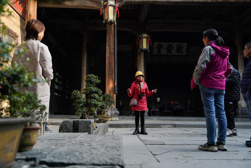 从早上开门到下午关门,胡晓雯几乎全天都待在敬爱堂里,“这里很多木结构,遇到吸烟的游客要立刻劝阻,防止火灾隐患。”除了管理工作外,她还经常进行义务讲解,“我喜欢给来自天南海北的游客们当导游,给他们介绍敬爱堂的建筑特点、西递村的风俗文化,我就是本村人,我为我们自己的文化感到自豪。”胡晓雯说。