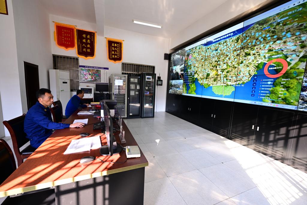 在监控中心,电子屏幕占据了一整面墙。“这是宏村智慧消防监测平台,通过物联网、大数据等技术,实现了全村重点建筑、消防设施、消防水源的互联互通。”舒建军介绍,这些年来,科技手段在消防工作中发挥越来越重要的作用。“宏村的重点建筑里都安装了温感、烟感、燃气等各类报警器,并有一键求助功能,哪一户发生报警,信息会立即反馈到我们监控中心。”