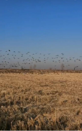 进井道路凹凸不平,部分巡检路只能步行。突然,左侧一块稻田内,几只正在觅食的大雁振翅高飞,数千只大雁同时腾空而起,羽翼拍打的声浪此起彼伏。它们在飞行中不断变换队形,形成了一股股流动的“鸟浪”。我震撼之余急忙掏出手机,陈建良笑着说:“这里经常能看到,我经常拍下来给我两个孩子看。那边河里还有上百只天鹅,十年前它们根本不敢在采油区附近落脚。”
