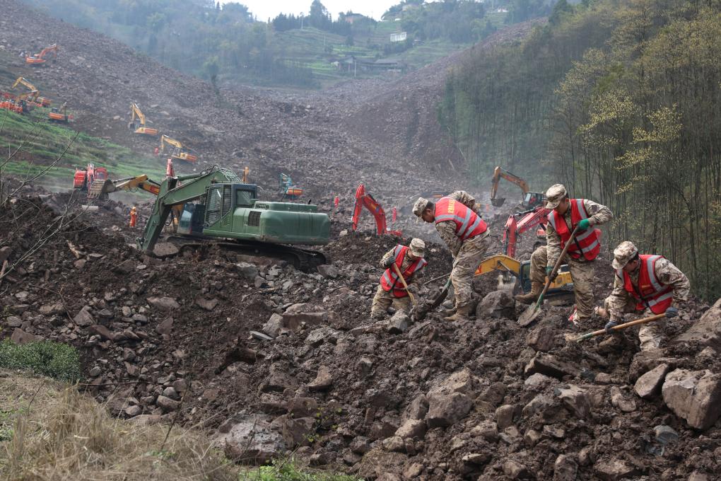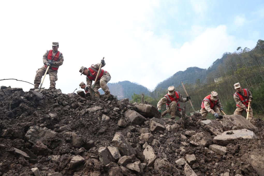2月10日,武警官兵在筠连县山体滑坡现场搜救。