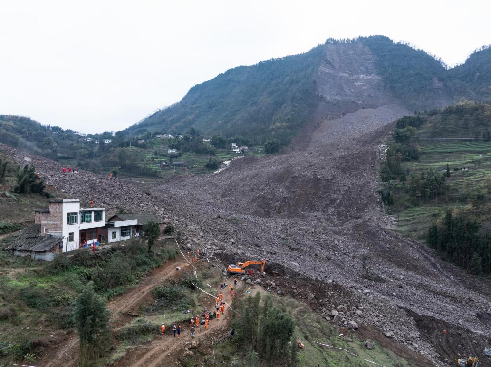 2月10日,连日阴雨的四川筠连沐爱镇金坪村山体滑坡救援现场天空终于放晴。清晨天刚亮,救援队伍继续争分夺秒,运用各种手段全力搜寻失联人员。