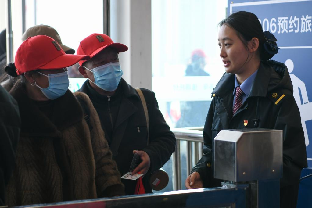 2月11日,外出务工人员排队进入西昌西站。