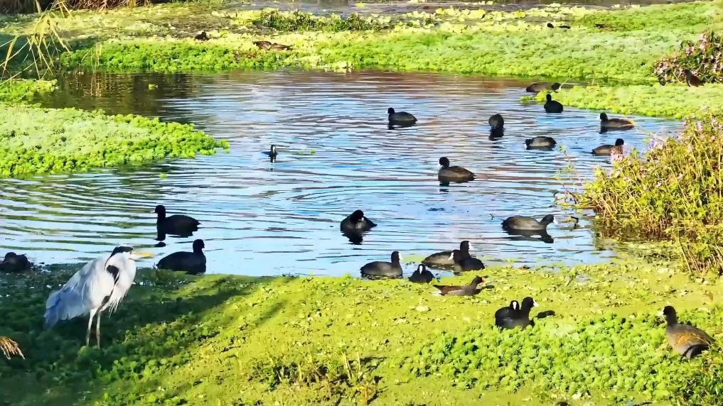 阳光下,红嘴鸥、骨顶鸡、赤麻鸭等数十种鸟类在云南晋宁南滇池国家湿地公园的湖面上悠然畅游,一幅迷人的高原湖滨生态画卷跃然眼前。近年来,当地通过水生环境治理、栖息地修复、常态化执法等多措并举,滇池南岸湿地的生物多样性显著提升,南滇池国家湿地公园已成为各类珍禽益鸟的重要越冬栖息地。