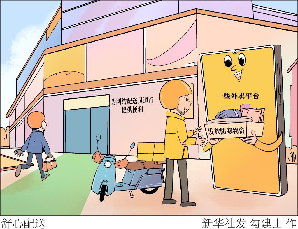 现实当中,一些外卖平台企业也因时因地制宜,如在冬季给骑手发放防寒物资、提供餐饮优惠、组织免费体检等。一些社区也组织建立快递驿站,供他们休息、充电,为他们送去温暖和关爱。