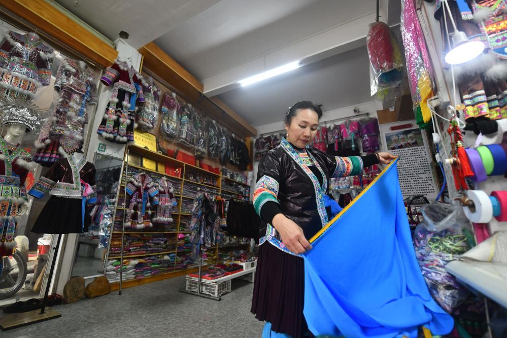 如今,杨洪英制作的苗族服饰和文旅产品,远销全国各地。随着当地文旅产业的发展,苗族服饰逐渐成为游客青睐的旅游商品。