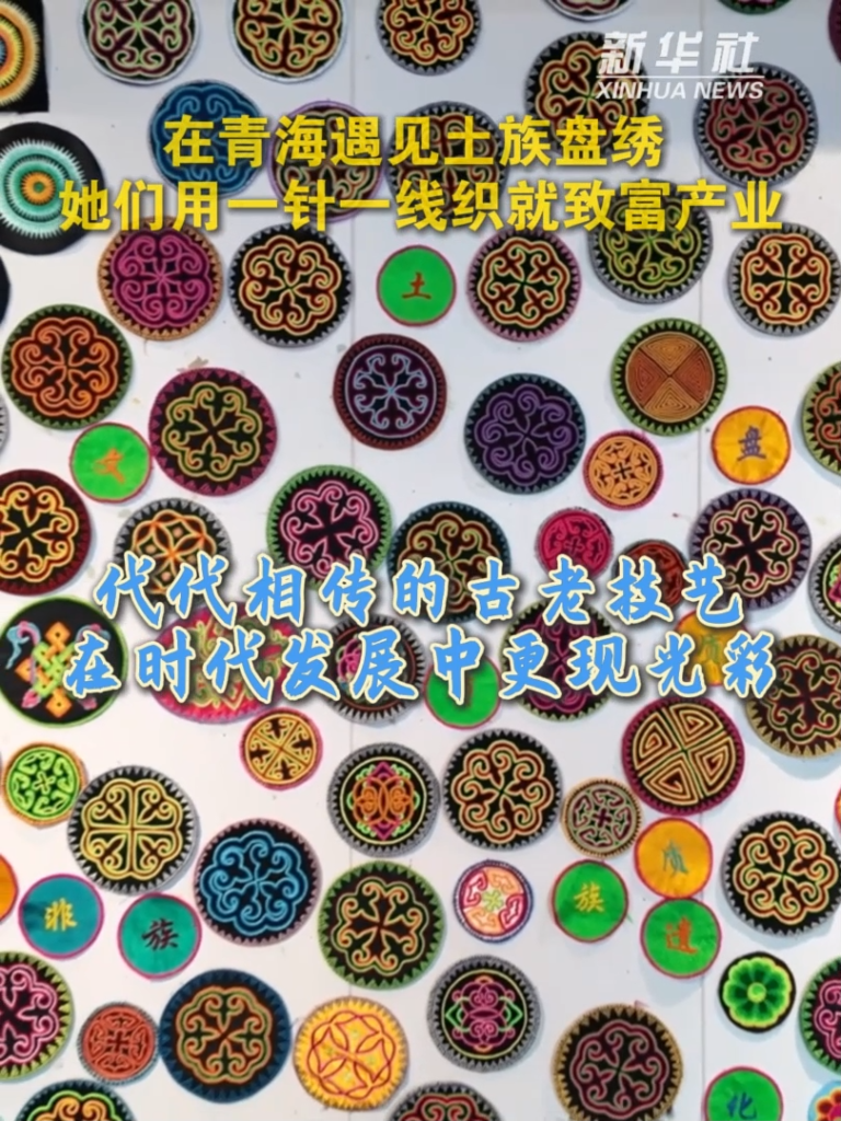 2006年,土族盘绣被列入第一批国家级非物质文化遗产代表性项目名录。如今,土族盘绣产品被越来越多的人认可和喜爱,土族盘绣这一古老的传统技艺也焕发出更鲜活的生命力。