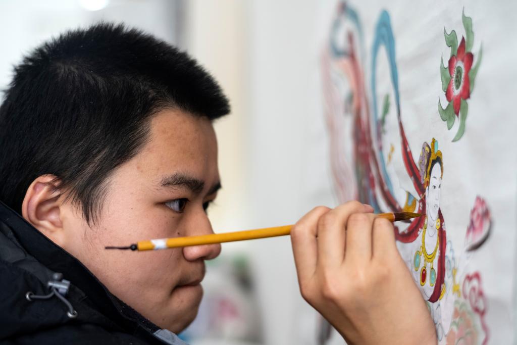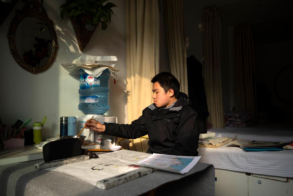 2月26日,胡星在创作绘画作品。孤星闪耀