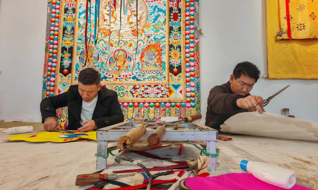 夏吾才旦的文化公司有20余名固定职工和500名签约画师,年产唐卡、堆绣作品超2万幅。“村民可选择居家或在工坊制作绣片,日薪200至300元,长期工作者月收入至少6000元。”他说。